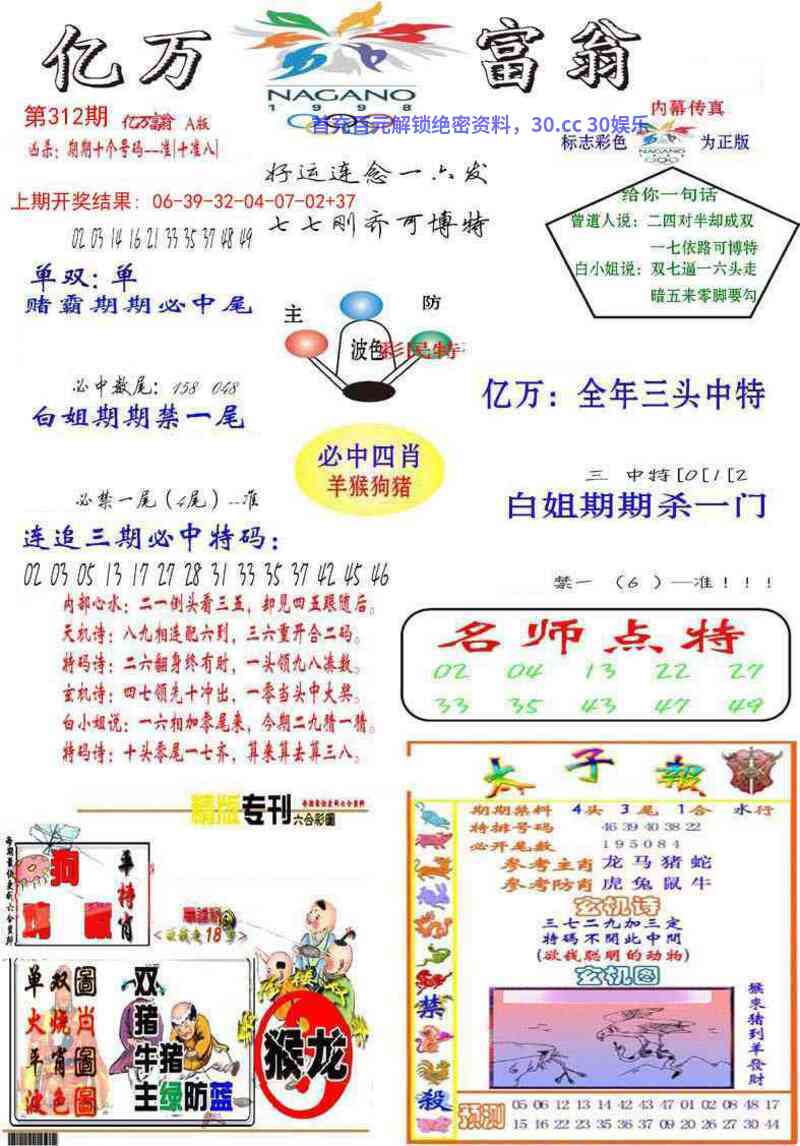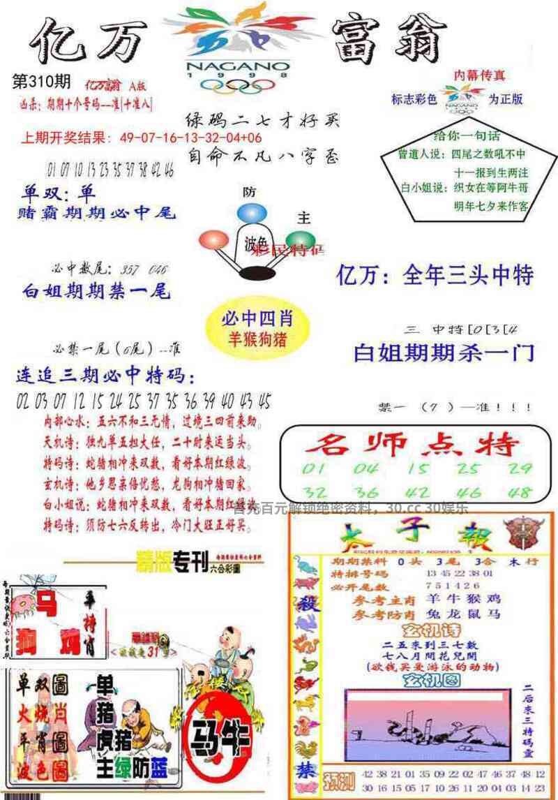 | 309期:绝杀二尾【1尾+3尾】开:鼠06中 |