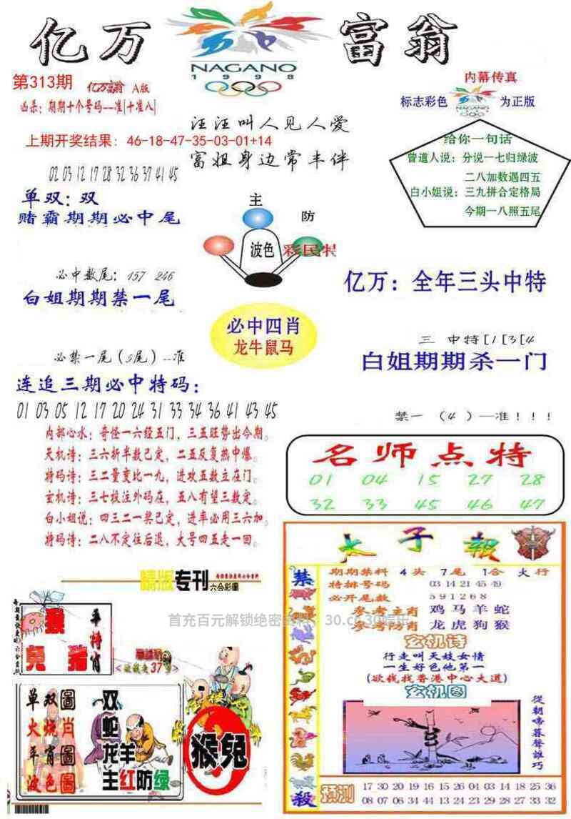 | 314期:绝杀二尾【1尾+6尾】开:羊23中 |